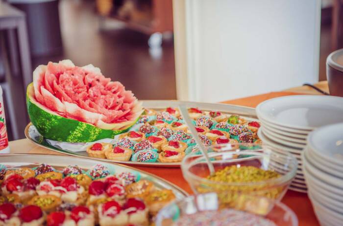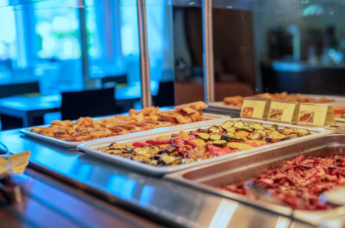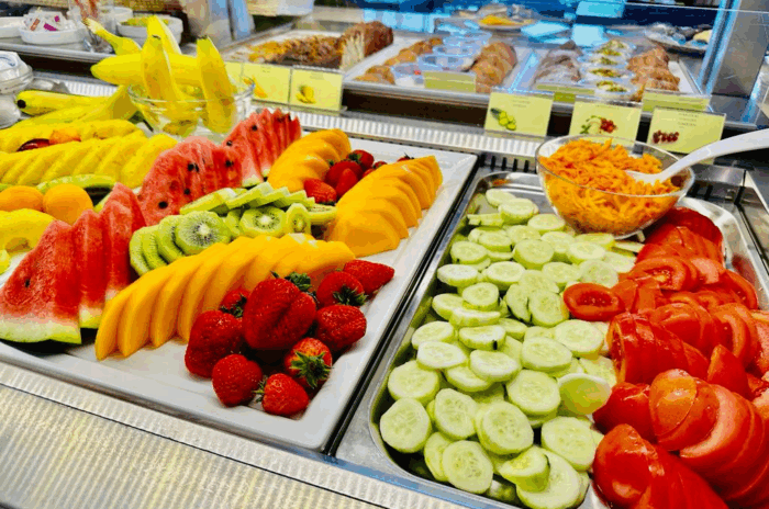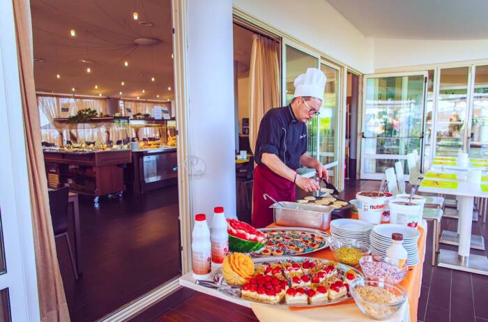 You’ll find classic English or American breakfast dishes: crispy bacon, eggs prepared in every style, cold cuts of all kinds, and pancakes. All accompanied by a selection of fresh seasonal fruits and cheeses. Finally, we will delight you with the best of Italian pastries to start your day with energy and taste.