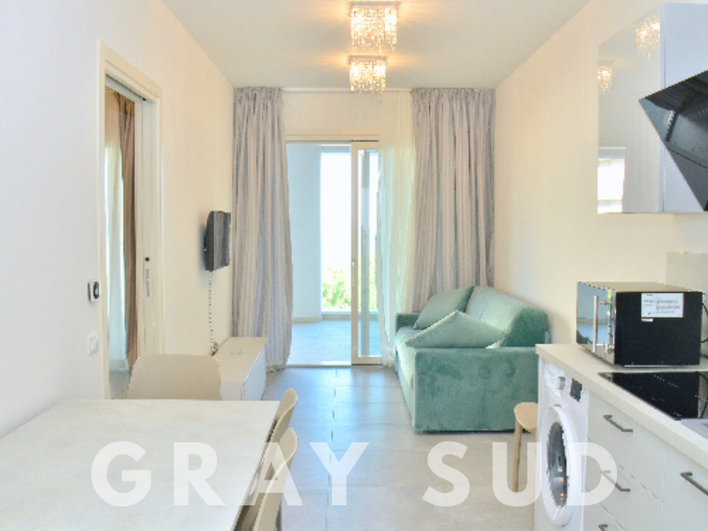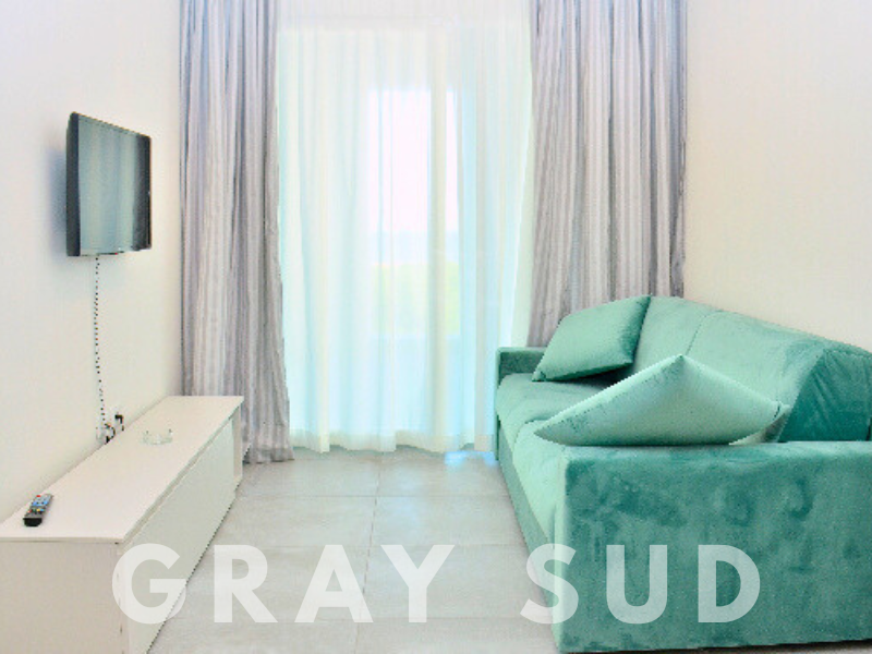 Die Drei-Zimmer-Apartments im neuen Stil bieten je nach Größe Platz für maximal 5 - 6 Personen. Sie bieten jeweils ein Wohnzimmer mit einer voll ausgestatteten Küchenzeile, ein bequemes Einzel- oder Doppelschlafsofa, 1 Zimmer mit einem Doppelbett, 1 Zimmer mit einem Einzelbett, 1 Badezimmer und eine große Terrasse auf der Südseite mit Meer- und Poolblick. Handtücher und Bettwäsche sind immer inklusive.