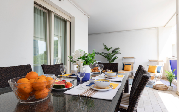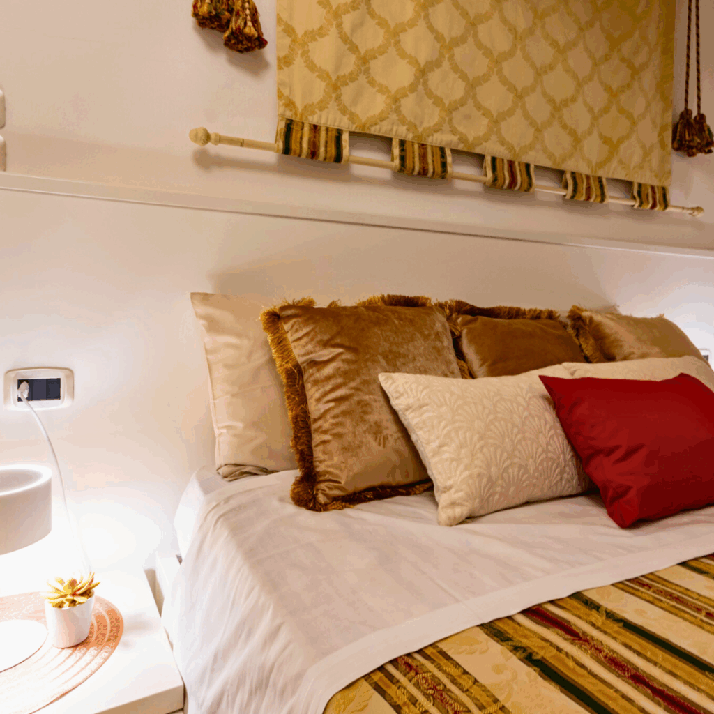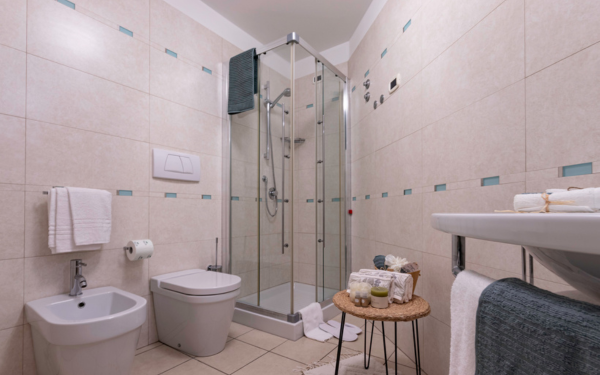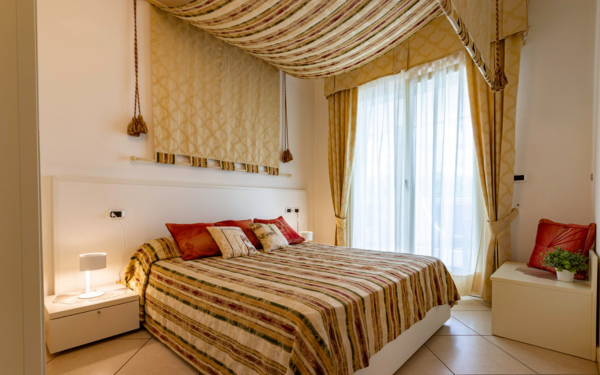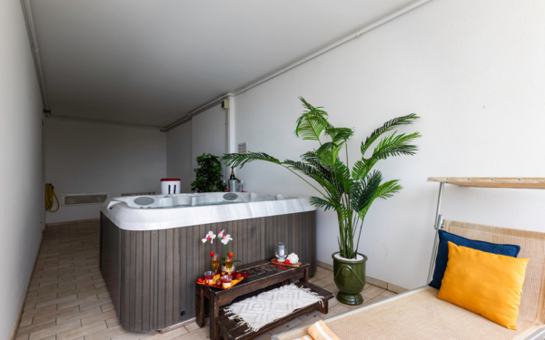 The corner terrace of about 60 m², facing southeast, is the real jewel of the suite: furnished with sunbeds and a private Jacuzzi, it is the perfect place to relax in the sun or enjoy a romantic aperitif overlooking the sea.